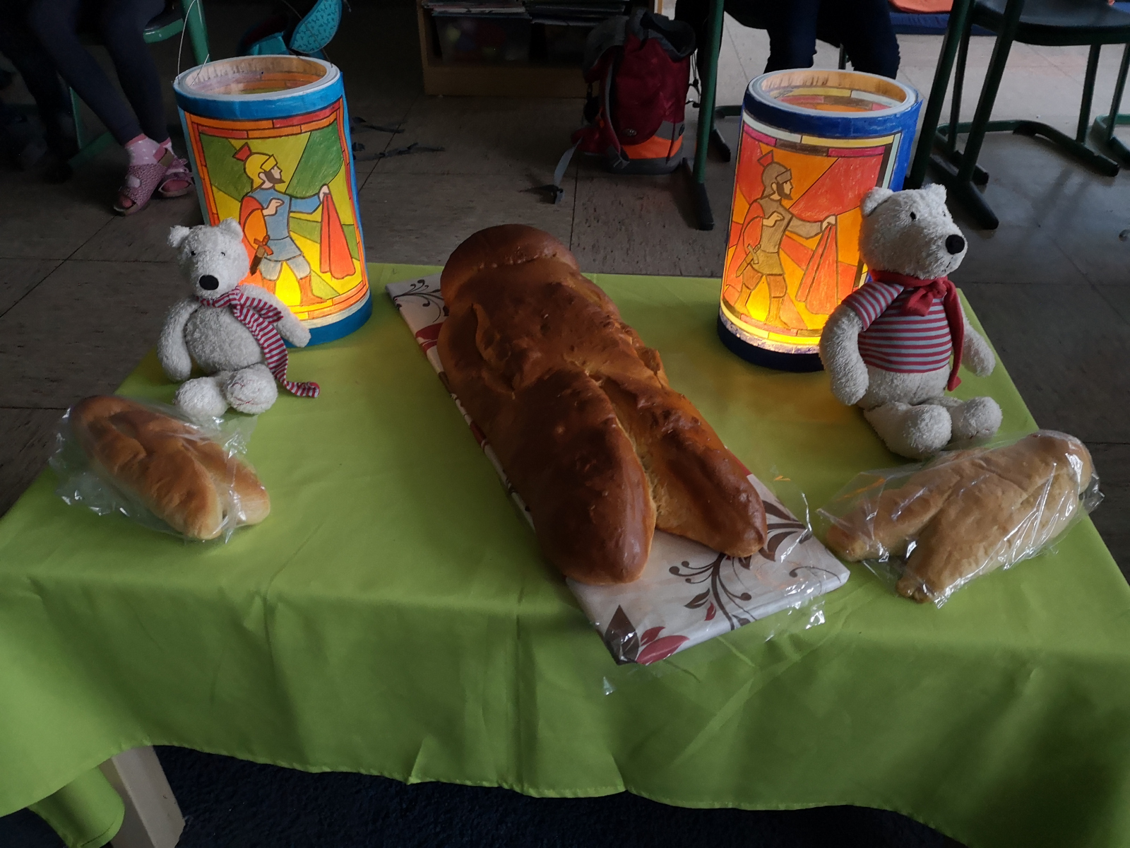 Sie kamen morgens mit ihren Laternen in die Schule und teilten sich dann einen großen Weckmann. Hier wurde der Gedanke des Teilens zum Fest des Heiligen Martins gelebt.